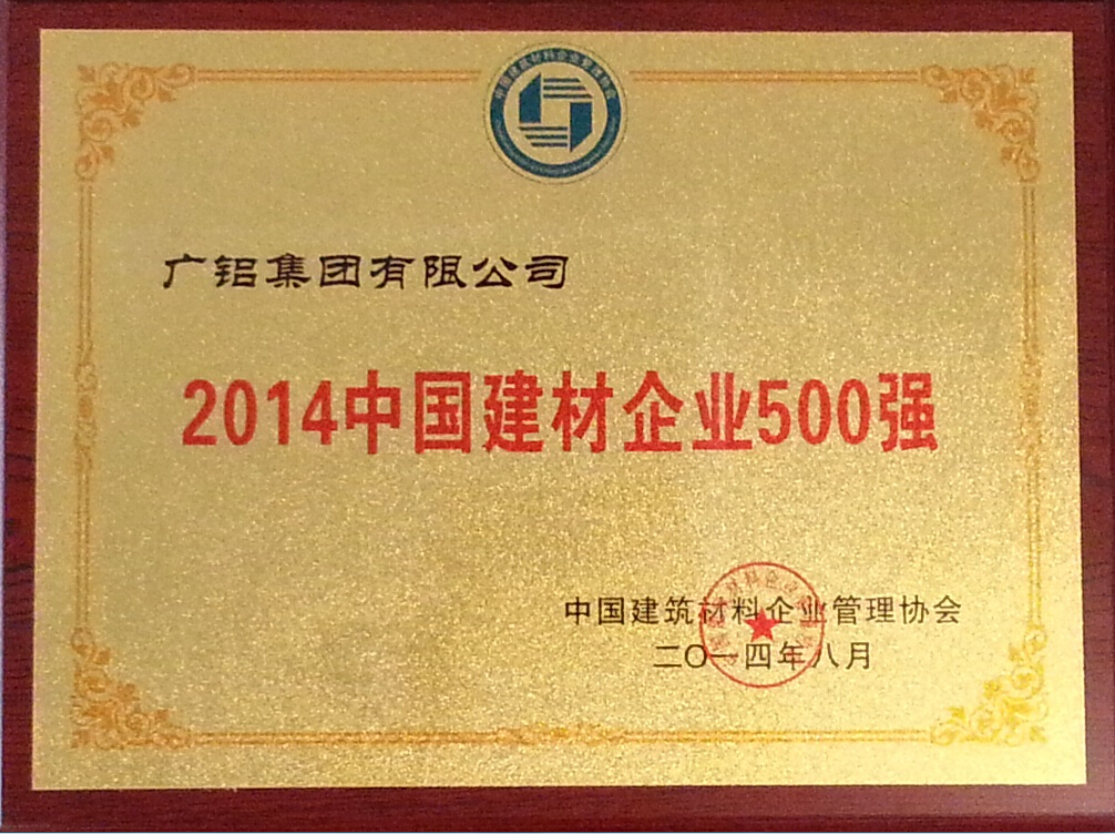 • 廣鋁集團再次攬獲“中國建材企業(yè)500強”殊榮