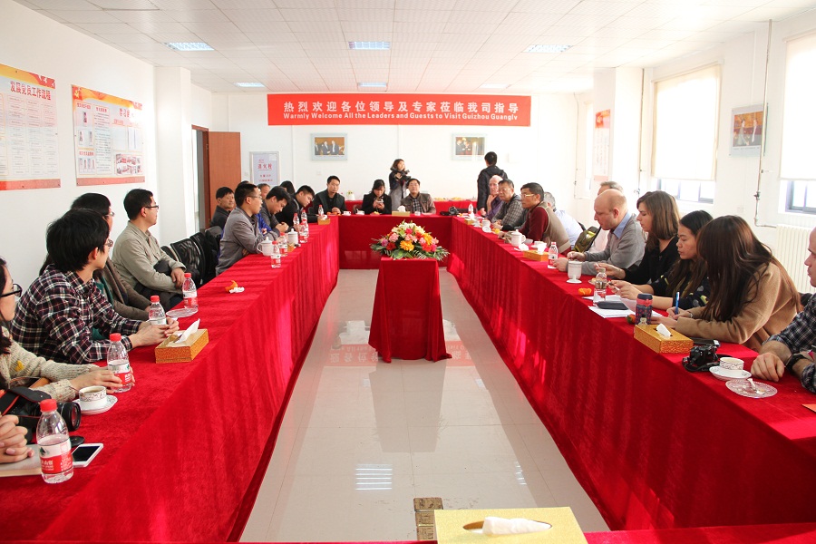 隨后,與會(huì )成員與我司領(lǐng)導到公司5樓會(huì )議室就中歐環(huán)境治理項目—貴州項目問(wèn)題展開(kāi)了交流學(xué)習座談會(huì )。公司生產(chǎn)總經(jīng)理唐俊首先向與會(huì )成員介紹了貴州公司實(shí)現第三方環(huán)境監督以來(lái),我司在環(huán)境治理及周邊工農關(guān)系轉變方面帶來(lái)的益處及我司在環(huán)境綠化方面取得的一些成效。會(huì )議最后,參與的各位領(lǐng)導和專(zhuān)家就環(huán)境治理相關(guān)問(wèn)題與貴州及第三方監督單位進(jìn)行交流?,F場(chǎng)氣氛活躍、和諧,大家相互交流相互學(xué)習,交流好的經(jīng)驗,學(xué)習好的方法。
