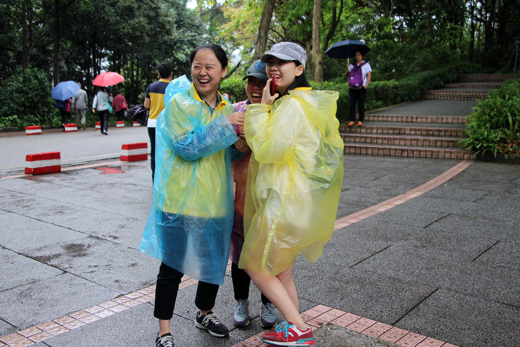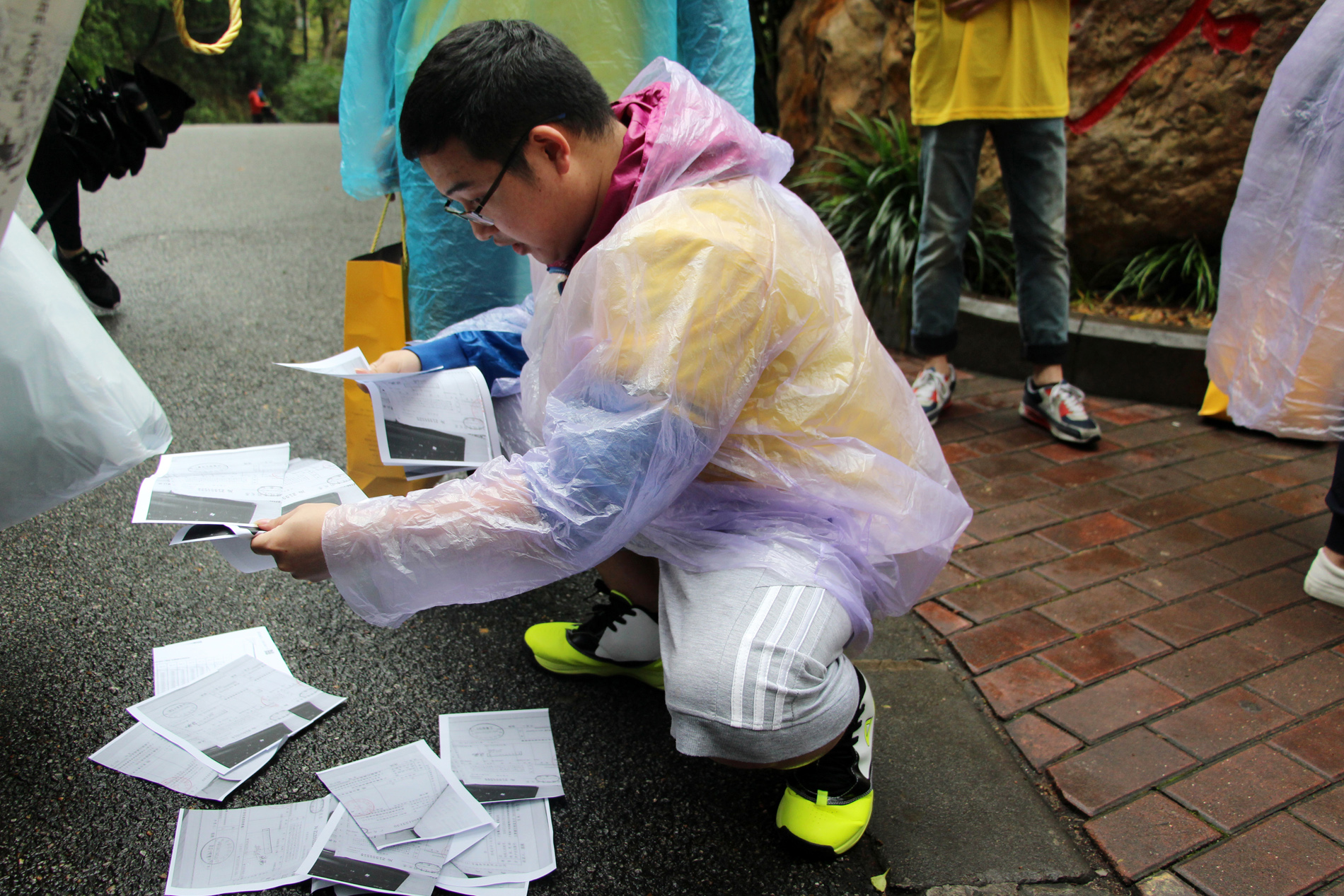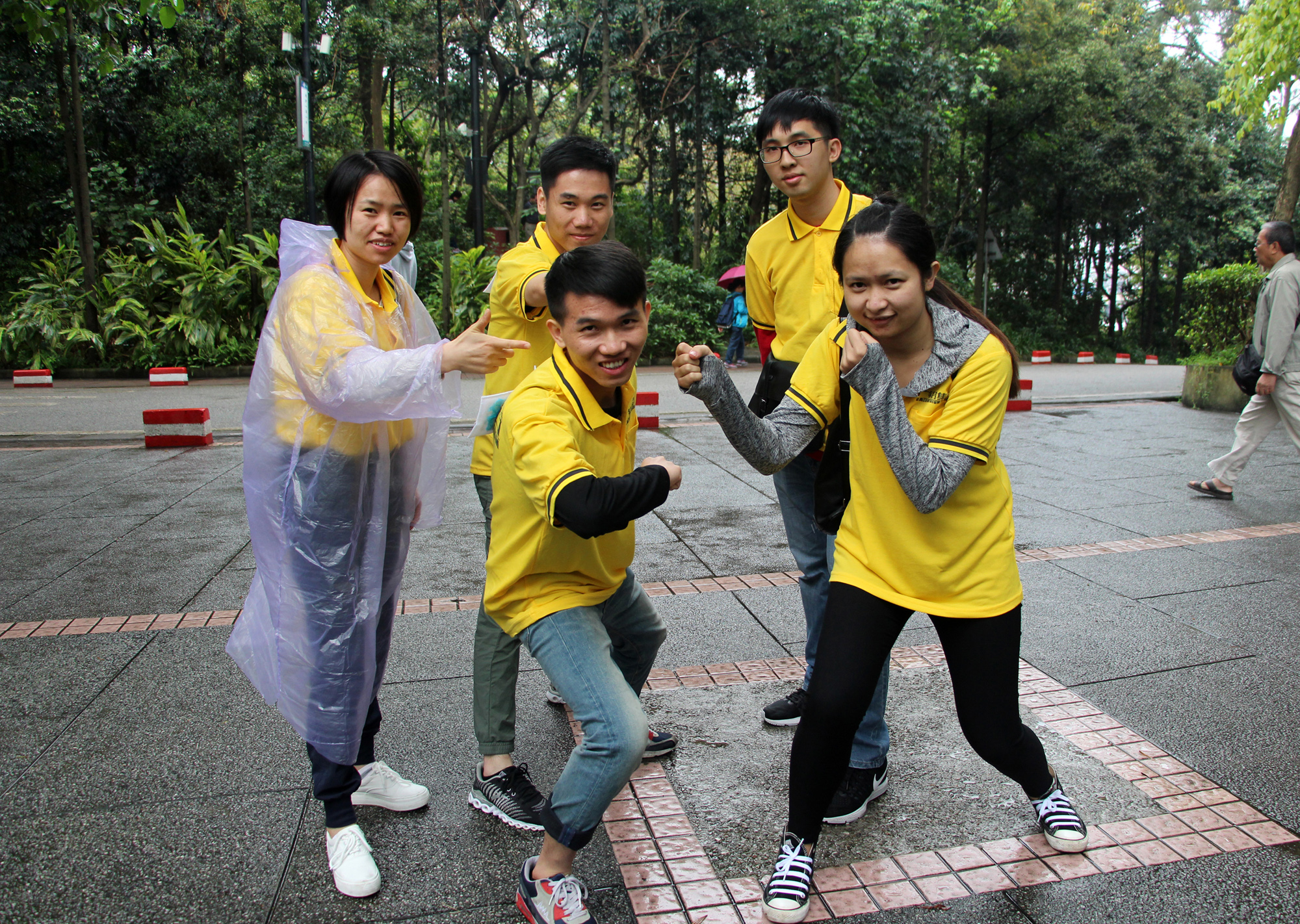 9點(diǎn)整,白云山腳下出現了一道亮黃色的特別風(fēng)景,雖然天突降大雨,但仍澆不滅大家的熱情。