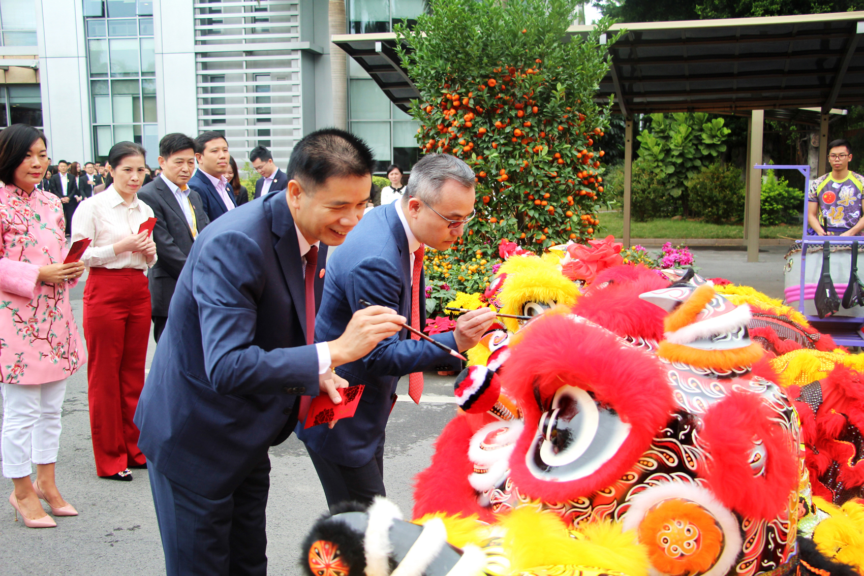 吉時(shí)到,集團領(lǐng)導們?yōu)槿皙{點(diǎn)睛,吉祥如意,財源滾滾來(lái)。