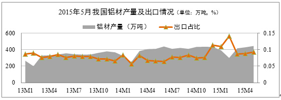 鋁材出口占比維持高位。統計數據顯示,6月份國內鋁材出口量為41萬(wàn)噸,環(huán)比增長(cháng)7.89%,同比增長(cháng)了40.74%,占國內鋁材產(chǎn)量的9.23%,總體出口占比水平有了較為明顯的提升。從政策操作層面上看,國內最新關(guān)稅優(yōu)惠政策是促使統計期間鋁材出口量顯著(zhù)增長(cháng)的重要因素。