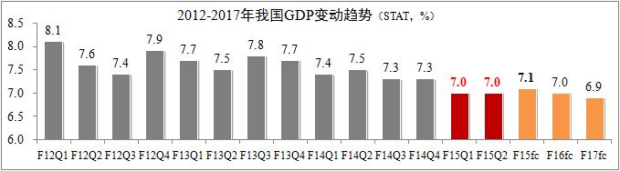 國家統計局最新公布數據,2015年上半年我國GDP同比增速為7%,其中第一季度和第二季度同比增速均為7%,經(jīng)濟運行趨于穩定。世界銀行在7月上旬公布的《中國經(jīng)濟簡(jiǎn)報》預測,2015年中國經(jīng)濟增速為7.1%,隨后三年將按0.1個(gè)百分點(diǎn)的速度回落??傮w而言,未來(lái)幾年我國經(jīng)濟增速將呈現逐步放緩的趨勢,其主要原因取決于結構性改革進(jìn)程。