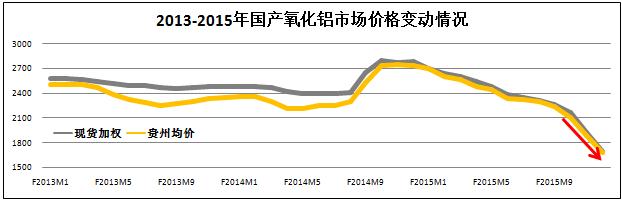 國內價(jià)格情況。統計期內,全國氧化鋁市場(chǎng)價(jià)格繼續保持了今年以來(lái)的下行趨勢,且下行幅度有所擴大。其中:12月國產(chǎn)現貨加權價(jià)為1694元/噸,環(huán)比下降11.7%,降幅環(huán)比擴大了3.4個(gè)百分點(diǎn);貴州均價(jià)為1680/噸,環(huán)比下降10.8%,降幅環(huán)比擴大了3.4個(gè)百分點(diǎn)。研究認為,目前氧化鋁市場(chǎng)價(jià)格直線(xiàn)下浮屬于異?,F象,主要原因是電解鋁做空力量加劇了市場(chǎng)悲觀(guān)預期。