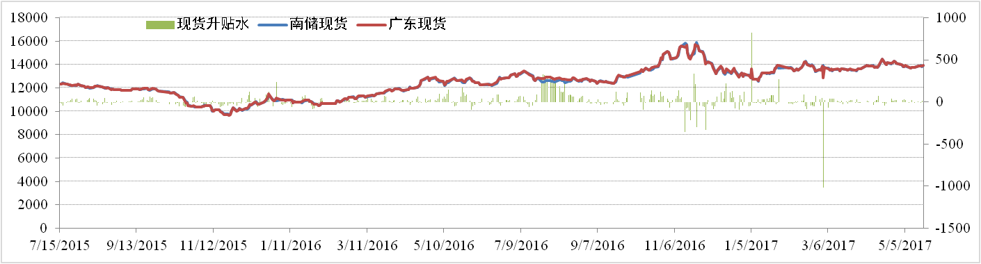 現貨價(jià)格方面:4月份國內現貨鋁價(jià)因政策面消息刺激,鋁價(jià)表現抗跌但上行動(dòng)力不足,主要在萬(wàn)四左右震蕩。截止到5月19日,長(cháng)江現貨市場(chǎng)價(jià)報收于13,900元/噸,環(huán)比下跌1.4%;華南現貨市場(chǎng)價(jià)報收于13,920元,環(huán)比下跌1.42%。國內鋁錠現貨社會(huì )總庫存125.41萬(wàn)噸,環(huán)比下降1.12%;廣東現貨社會(huì )庫存33.7萬(wàn)噸,環(huán)比下降6.13%。