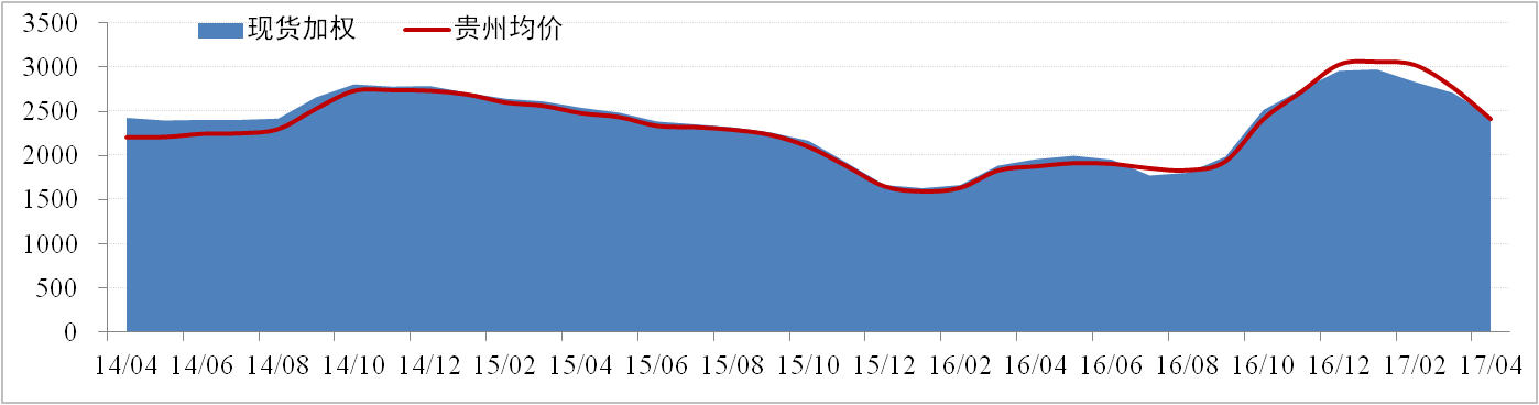 全國現貨價(jià)格方面,5月18日全國氧化鋁現貨加權價(jià)為2,286元/噸,較月初環(huán)比下降4.67%。貴州氧化鋁現貨加權價(jià)為2,260元/噸,較月初環(huán)比下降4.67% 。4月份北方價(jià)格快速下滑致使西南地區庫存壓力加快,5月西南地區氧化鋁現貨成交價(jià)格領(lǐng)跌與全國現貨價(jià)格。