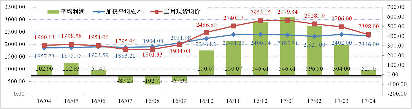 援引行業(yè)數據顯示:2017年4月中國國產(chǎn)氧化鋁按運行產(chǎn)能加權平均成本2346元/噸,較3月份下跌約54元/噸。其中,煤炭和礦石價(jià)格小幅下滑、燒堿價(jià)格受環(huán)保因素影響相對堅挺。以4 月末的大單成交平均價(jià)格 2300 元來(lái)計算,多數氧化鋁企業(yè)已經(jīng)開(kāi)始進(jìn)入盈虧平衡甚至微虧狀態(tài)。