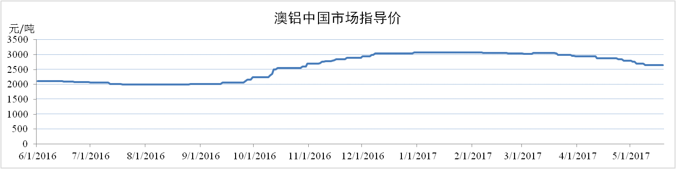 國際方面,截止到5月19日,中國進(jìn)口氧化鋁價(jià)格出現明顯的下跌,澳洲氧化鋁中國市場(chǎng)指導價(jià)格為2625元/噸,環(huán)比下跌8.22%。印度韋丹塔電解鋁廠(chǎng)前期因事故影響部分產(chǎn)能,另外印度有減產(chǎn)消息傳出導致市場(chǎng)對上游氧化鋁市場(chǎng)預期將價(jià)格大幅拉低。