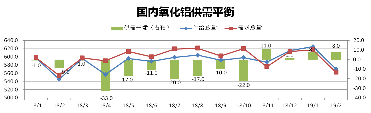 分析認為:2月礦石供應逐漸穩定,氧化鋁產(chǎn)量有所下降,下游需求仍舊疲軟,氧化鋁供給過(guò)剩。2月氧化鋁價(jià)格仍處于低位,部分企業(yè)將出現適度減產(chǎn),但因需求下滑,氧化鋁仍舊供過(guò)于求。